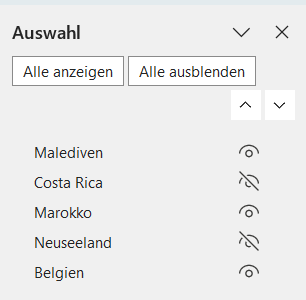 Hinweis: Wenn du alle Notizen mit nur einem Klick ein- oder ausblenden möchtest, nutze die beiden Schaltflächen Alle anzeigen bzw. Alle ausblenden im oberen Teil des Auswahlbereichs.