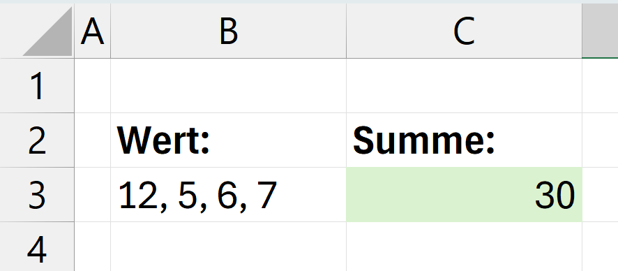 So addierst du mehrere Zahlen, die in einer Zelle stehen und mit einem Komma getrennt sind