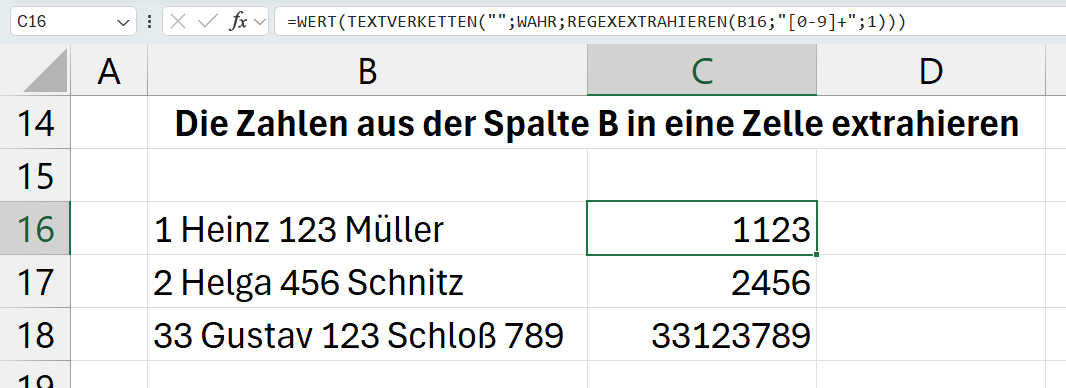 =WERT(TEXTVERKETTEN("";WAHR;REGEXEXTRAHIEREN(B16;"[0-9]+";1)))