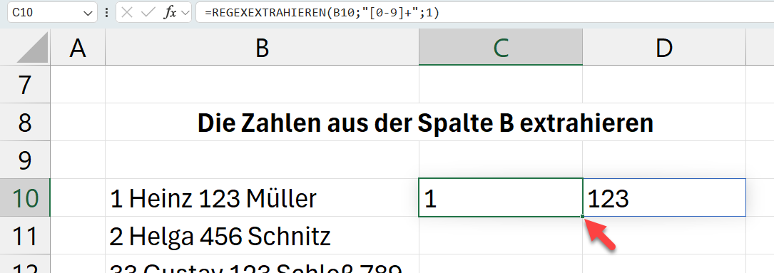 =REGEXEXTRAHIEREN(B10;"[0-9]+";1)